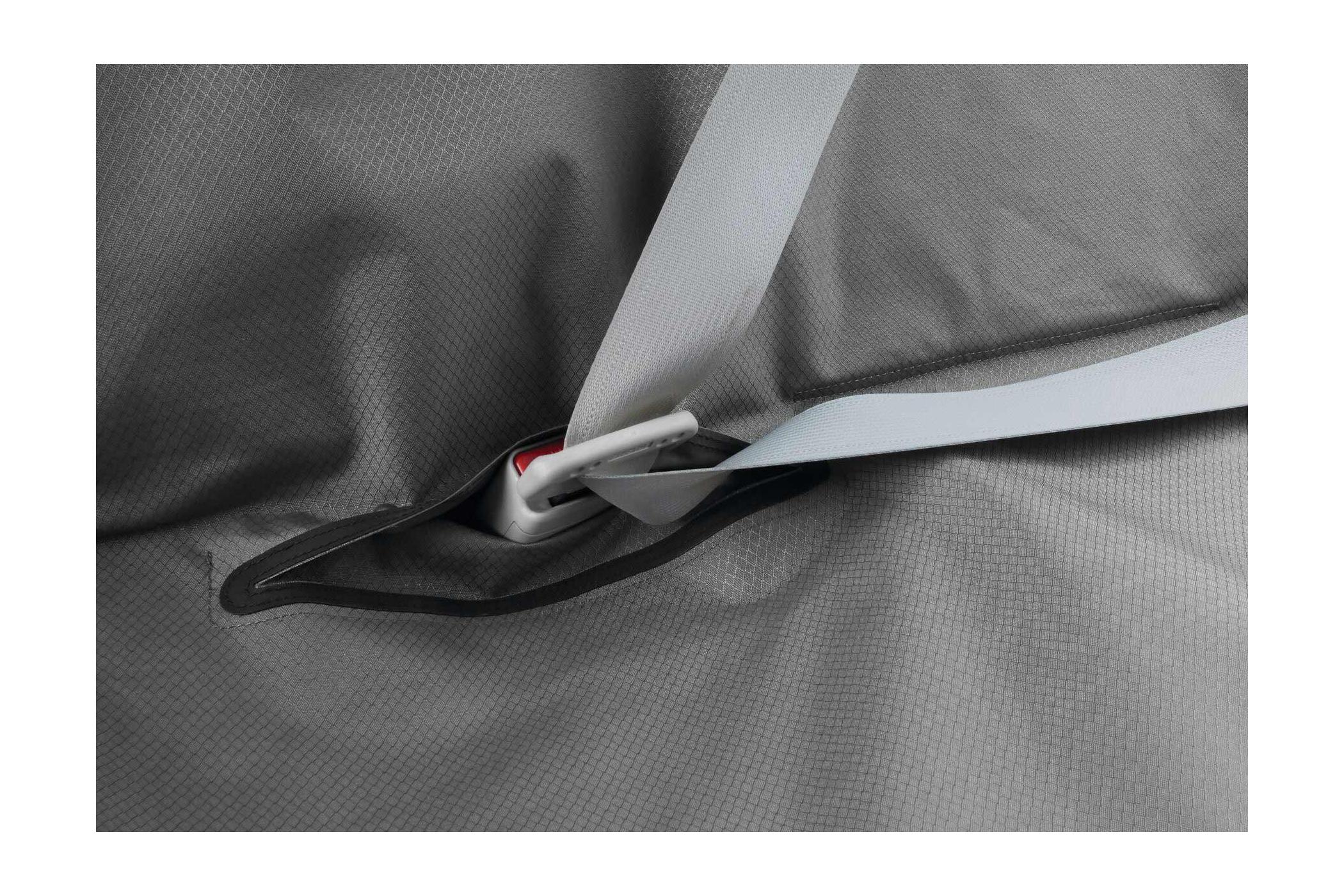 Tejido antideslizante para que el perro se mantenga estable durante el viaje.Fijaciones seguras que lo mantiene bien posicionada. Accesos a los cierres de los cinturones. Fácil de instalar y desmontar para limpieza bien con cepillo o en lavadora.